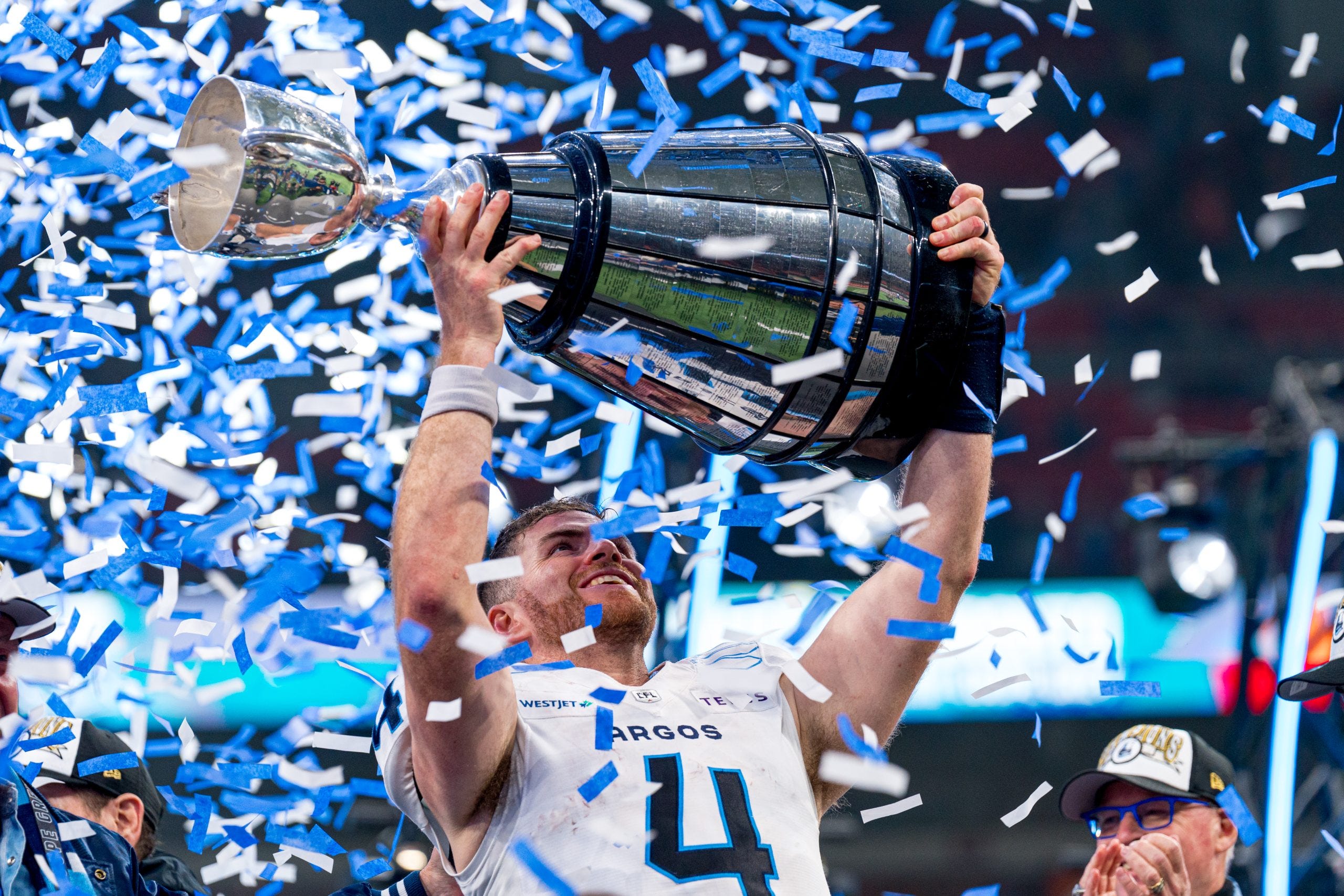 (Pictured Above: Toronto QB Nick Arbuckle Hoists The Grey Cup | courtesy CFL)