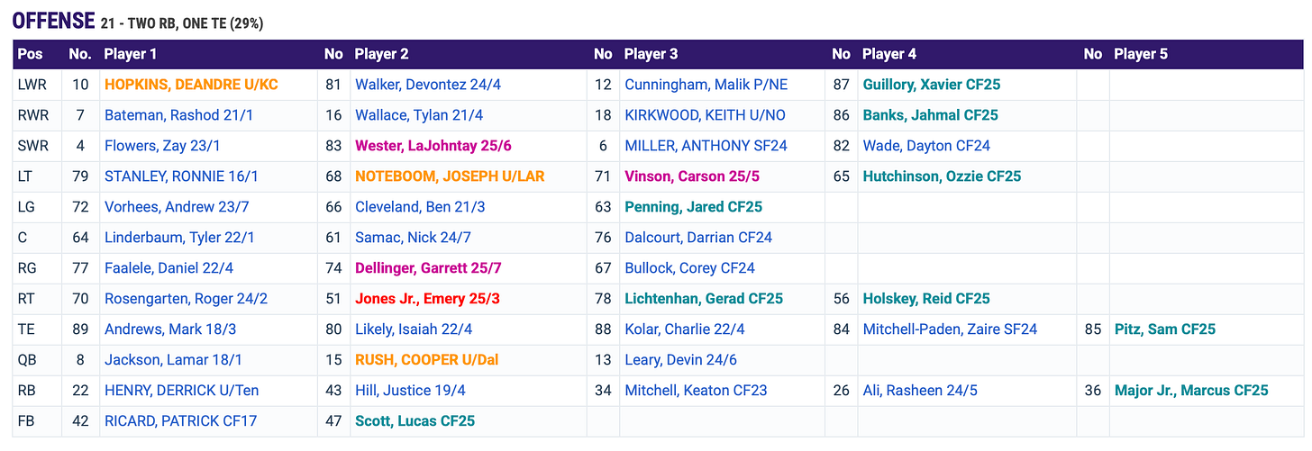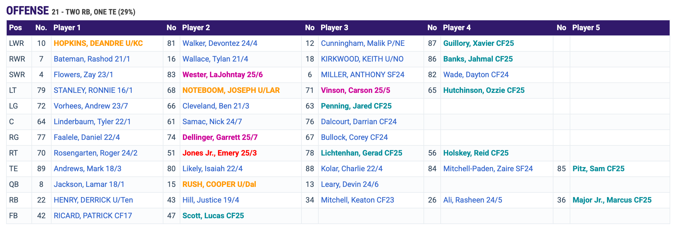 - FB Patrick Ricard (potential UFA; $2.872.5/1 yr, $167,500 SB/$1.443M 2025 cap)
