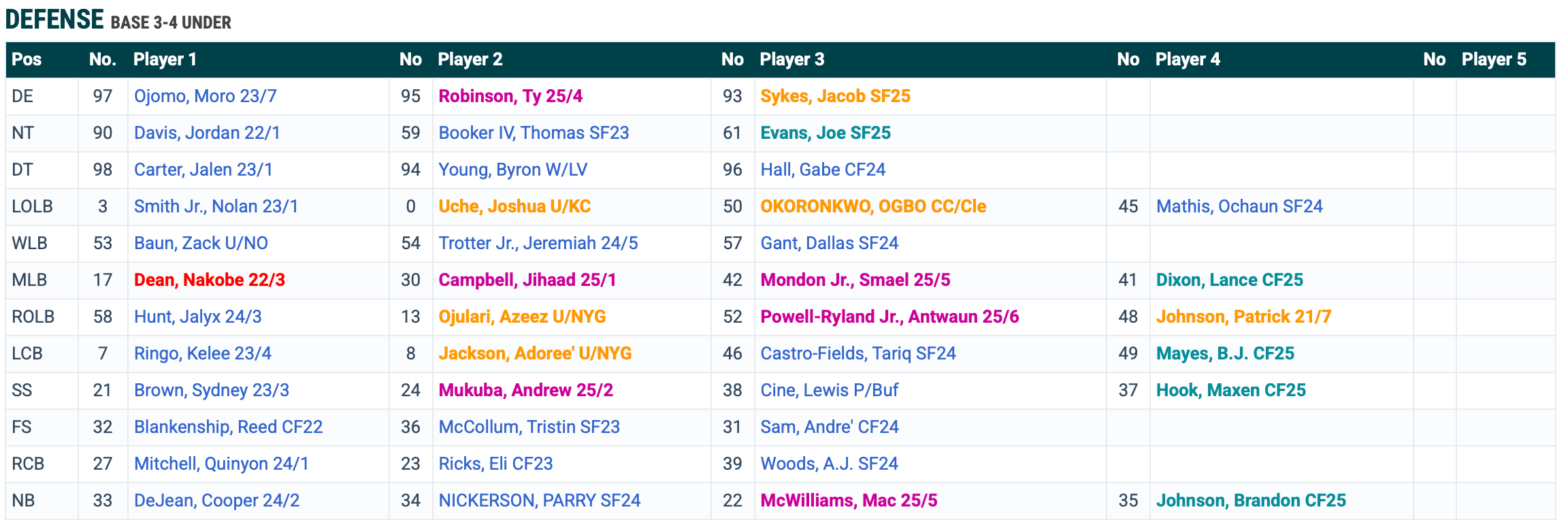 - LB Patrick Johnson (13/0; UFA Giants; $1.275M/1 yr, no gtd/$75K RB/$1.135M 2025 cap)