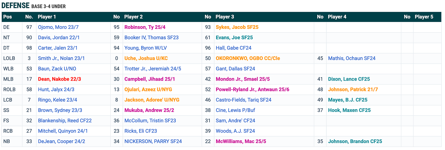- LB Joshua Uche (13/1; UFA Chiefs; $1.92M/1 yr, $1.25M gtd/$750K SB/$1.32M 2025 cap/4 void years/$500K incentives)