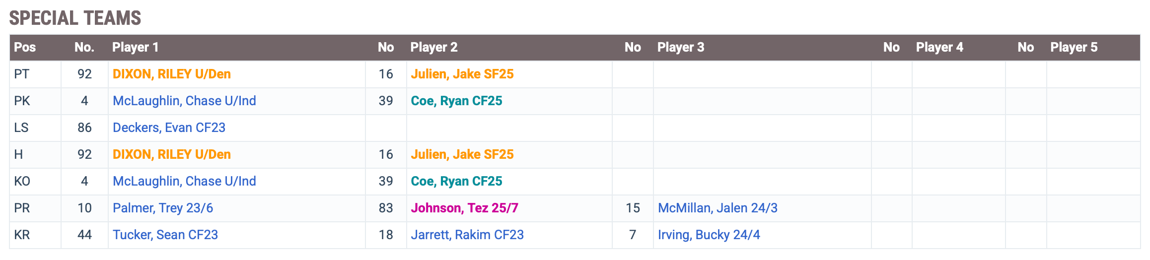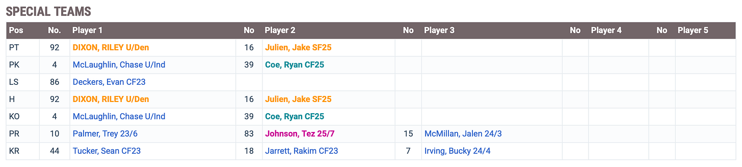 P Riley Dixon (17/0; UFA Broncos; $6M/2 yrs, $3M gtd/$3M 2025 cap)