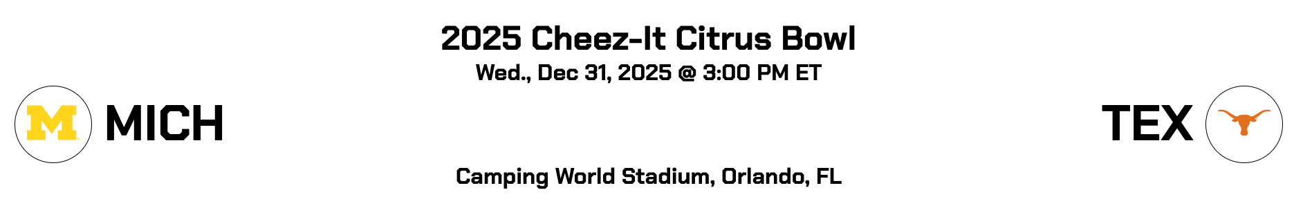 The Cheez-It Citrus Bowl is scheduled for 3:00pm eastern time on Thursday, December 31, 2025 in Orlando, Florida. With two blue-blood programs in action, observers will be disappointed to learn that each school could be without over a dozen players, or more, on each side. With Michigan entering the Kyle Willingham era, the game will be an opportunity for younger players to earn a role for next year, as interim head coach Biff Poggi stated the team will be without 12-15 players, although that number is expected to be much greater. Notable absences are expected to include top prospects such as running back Justice Haynes, along with defensive ends Jaishawn Barham and Derrick Moore. Texas will also be minus significant firepower, especially on defense side of the ball, where edge rushers Trey Moore and Ethan Burke, linebacker Anthony Hill Jr. and defensive backs, Michael Taaffe, Malik Muhammad and Jaylon Guilbeau have all opted out. However, this contest will feature two signal-callers who could become future first round picks in Arch Manning of Texas and Bryce Underwood of Michigan, while Longhorns defensive end Collin Simmons, who has 11 sacks this year, expects to be in contention as the top player in the 2027 NFL Draft.