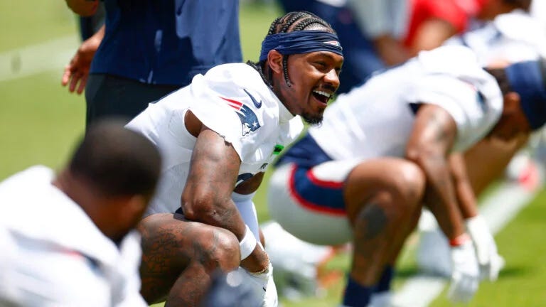 We had a Stefon Diggs (photo: New England Patriots) sighting in Foxborough this week. No word, as to whether Diggs took the yacht up to Boston Harbor with his girlfriend Cardi B. While Diggs did not workout in team drills, as he recovers from an ACL injury, he did address the team in regards to the recent videos and photos that surfaced on social media. It hasn’t been a smooth ride early for Diggs but it’s a positive sign that he had the self awareness to report to OTAs and was seen doing rehab exercises. Diggs is being counted on to be WR1 for Drake Maye, who has drawn rave reviews thus far during workouts. Although, there is a chance that the former All Pro wideout could begin the year on the IR.