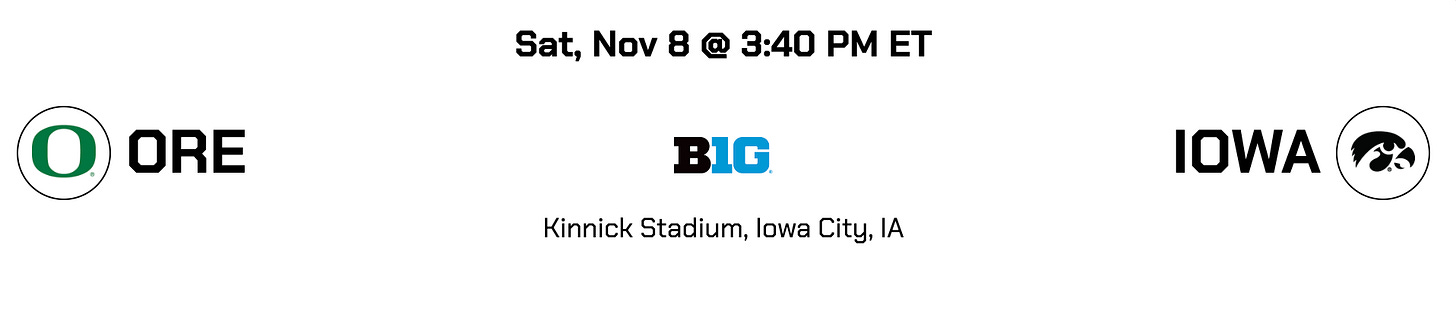 Saturday, November 8, 2025 || Kinnick Stadium (Iowa City, IA) || 3:30 ET - CBS