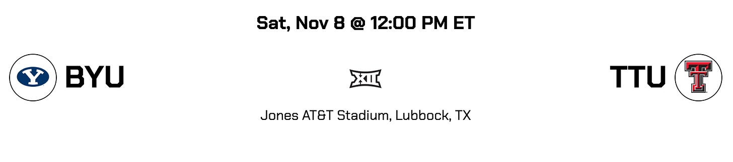 Saturday, November 8, 2025 || Jones A&T Stadium (Lubbock, TX) || Noon ET - ABC