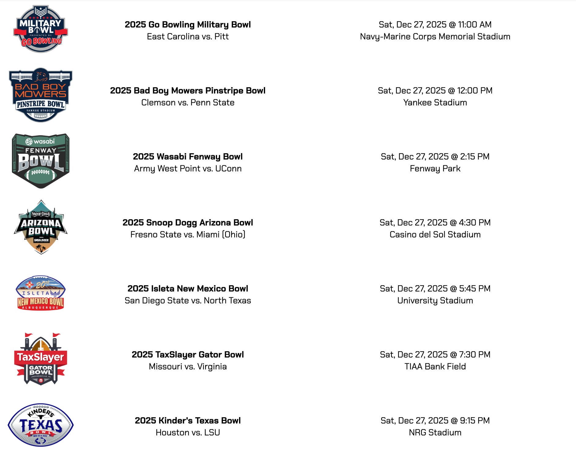 The college bowl game season features seven games on the docket for Saturday. To help track players on the draft radar in action today, we have provided links to our team reports for each school.