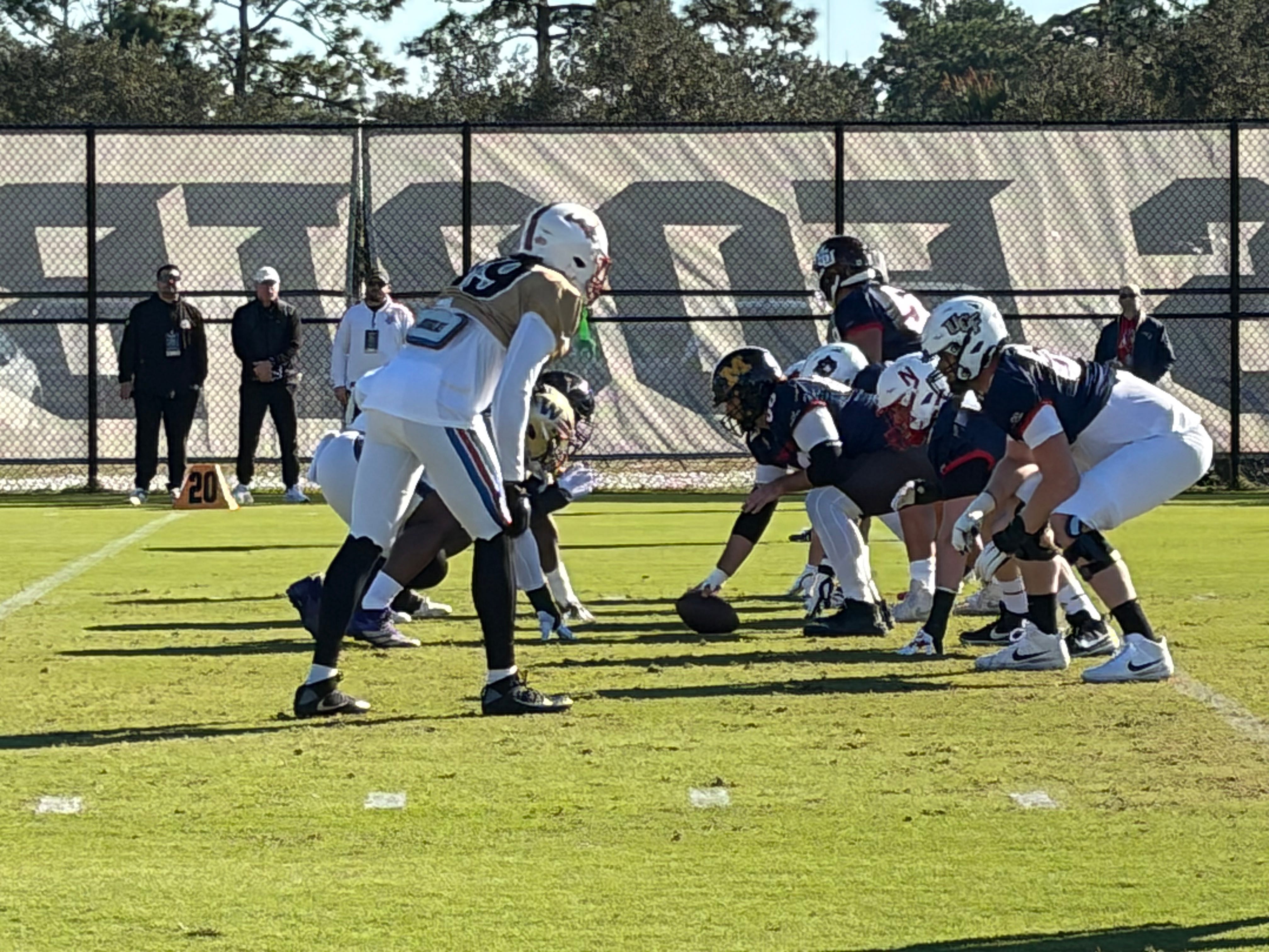 The second day of practice for the first-ever American Bowl finally brought us to the outdoors on the campus of UCF, which has been an accommodating host. The weather hovered around 50-degrees for most of the day with more NFL scouts and execs rolling in to soak in the session.