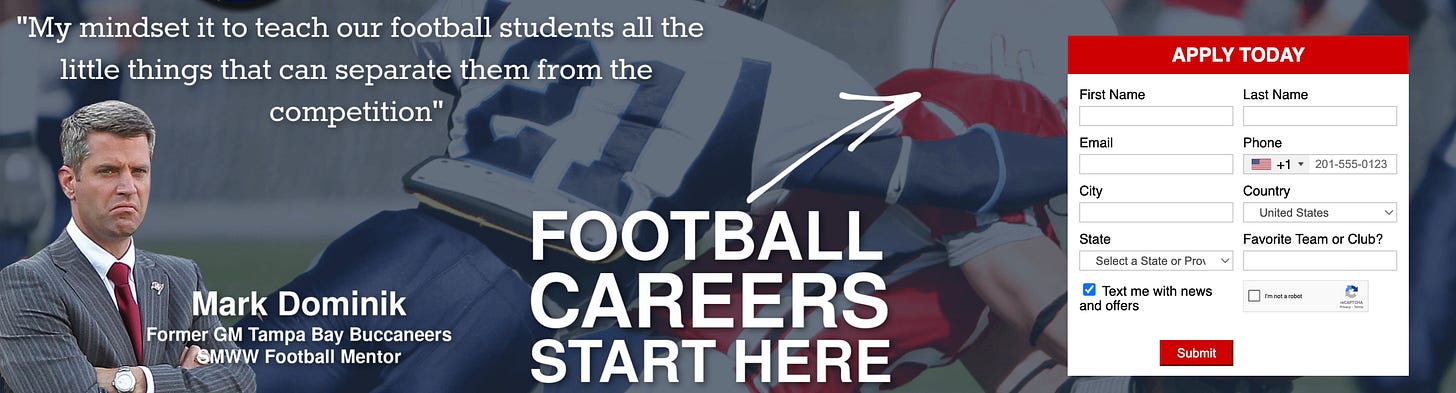 The All Access Football Newsletter is Presented By Sports Management Worldwide, ‘The Global Leader In Sports Business Education.’ With 16 online football courses to choose from, SMWW is here to help advance your sports career. Click here to begin your journey!