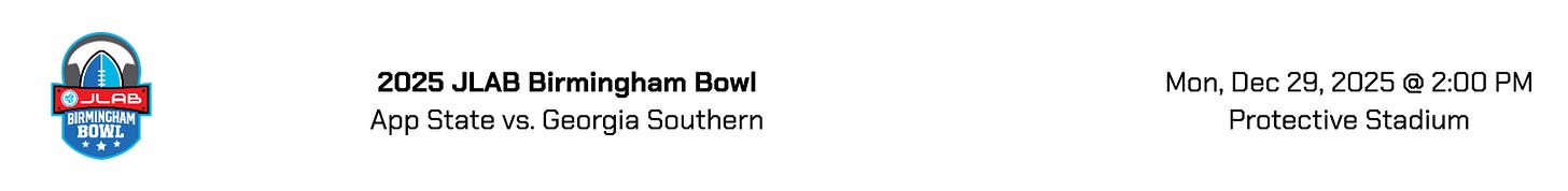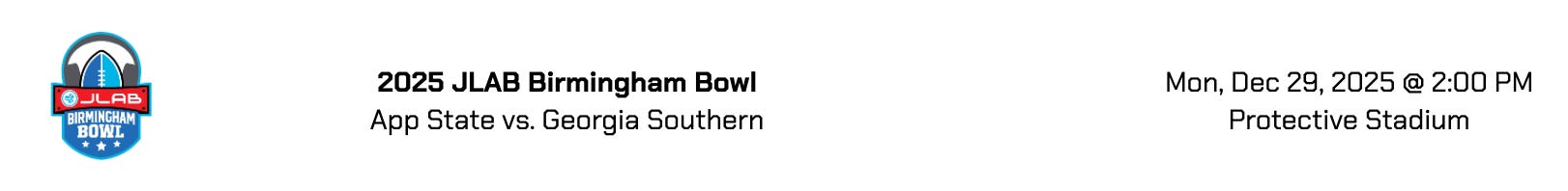 The JLab Birmingham Bowl at Protective Stadium is scheduled for Tuesday, December 29, 2025 at 2:00pm eastern time. The game should feel like a home game for Georgia Southern, which plays approximately 500 miles away, while Appalachian State is expected to be without nearly three dozen players who have opted out, or gone home for the holidays after not expecting to receive a bowl invite. Below are two participants expected to be in action for the contest that NFL scouts will be keeping close tabs on: